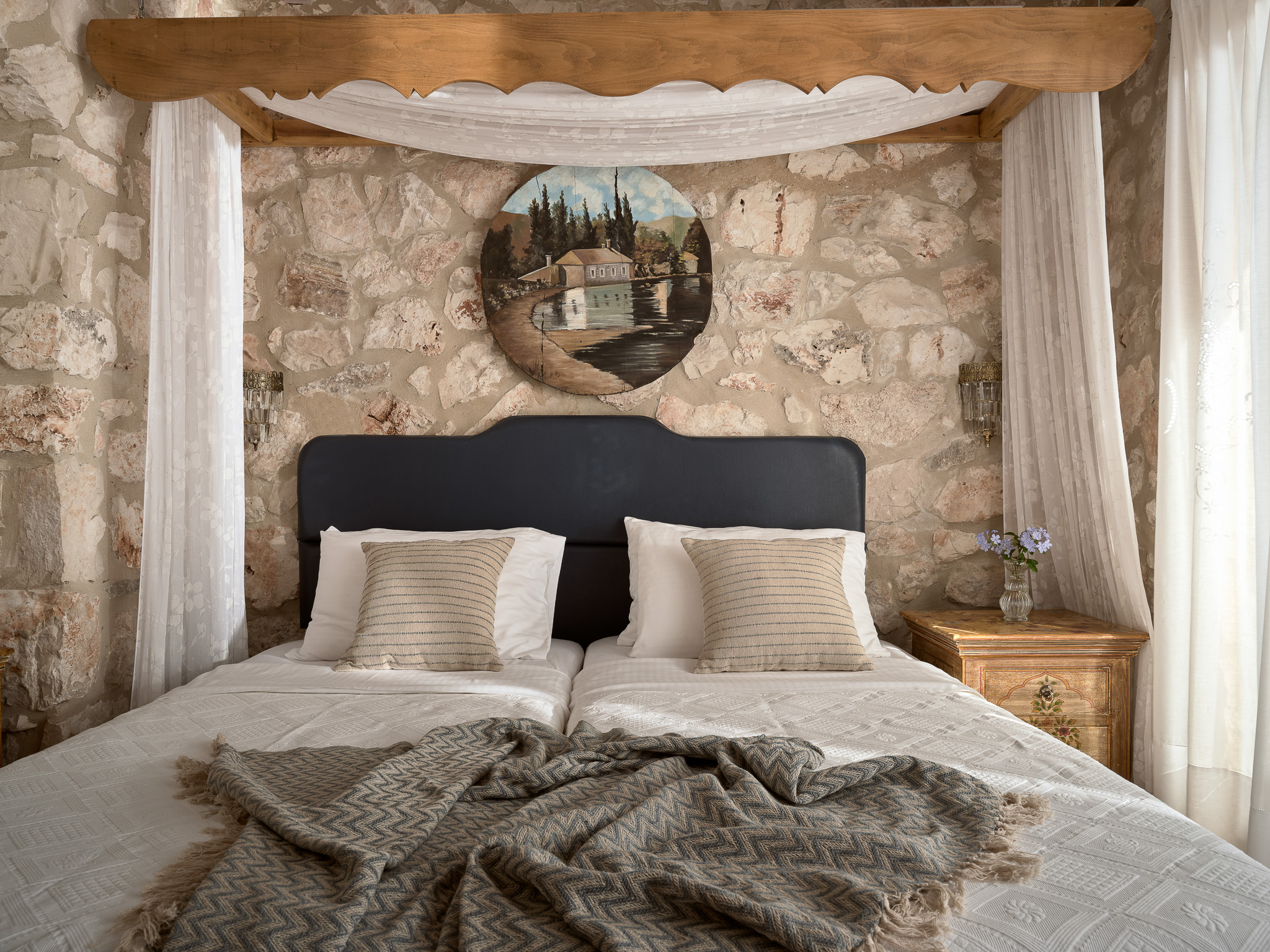 Contessa has three bedrooms, one en-suite Master double upstairs with a private balcony and then on the lower ground floor, there are two twin bedrooms which share a bathroom.