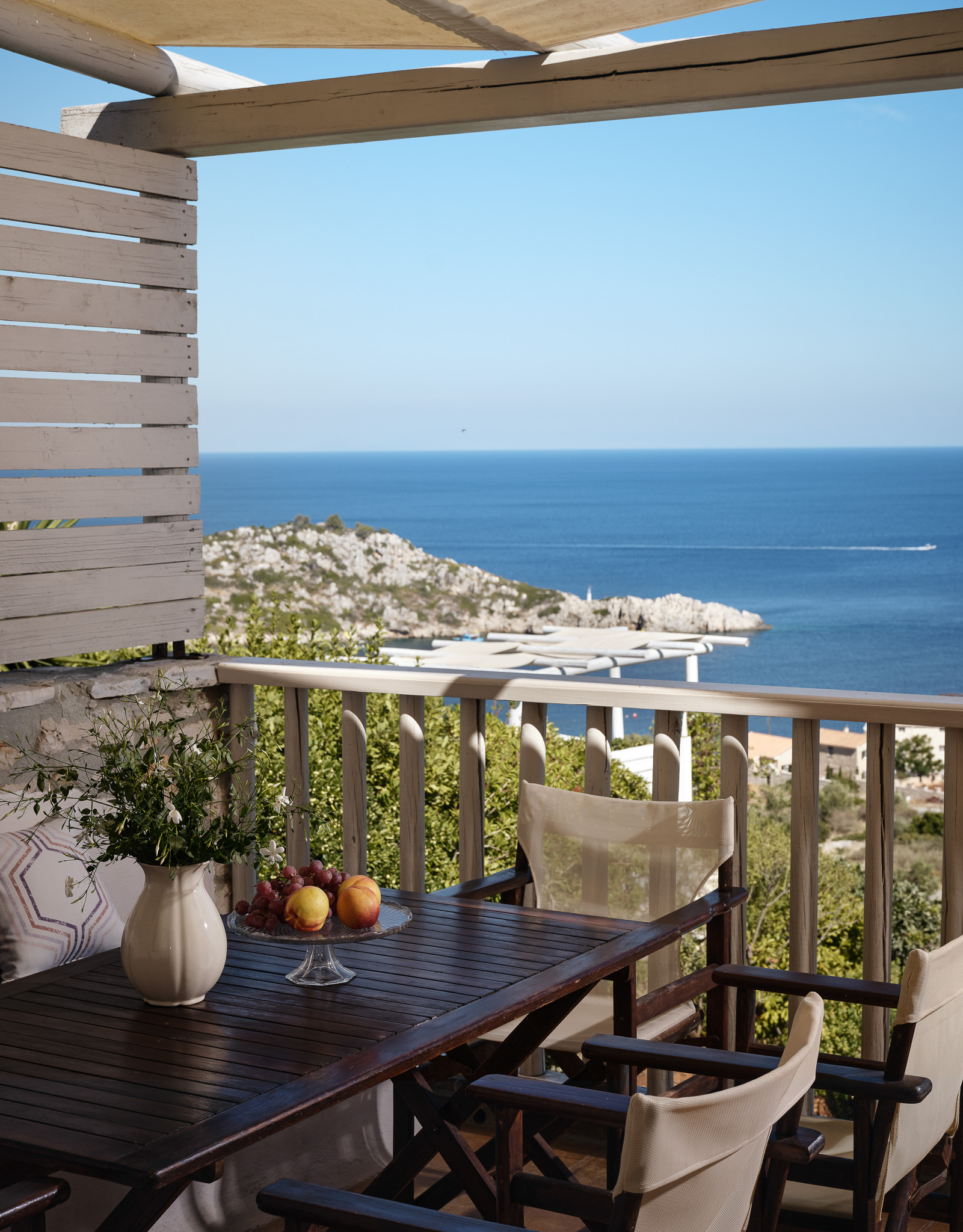 Outside you’ll find a pool that overlooks the sea with the essential BBQ and outside dining area. Don’t forget the outside lounge and sunbeds whilst you enjoy a glass of rosé in the long evenings, looking out towards the port.