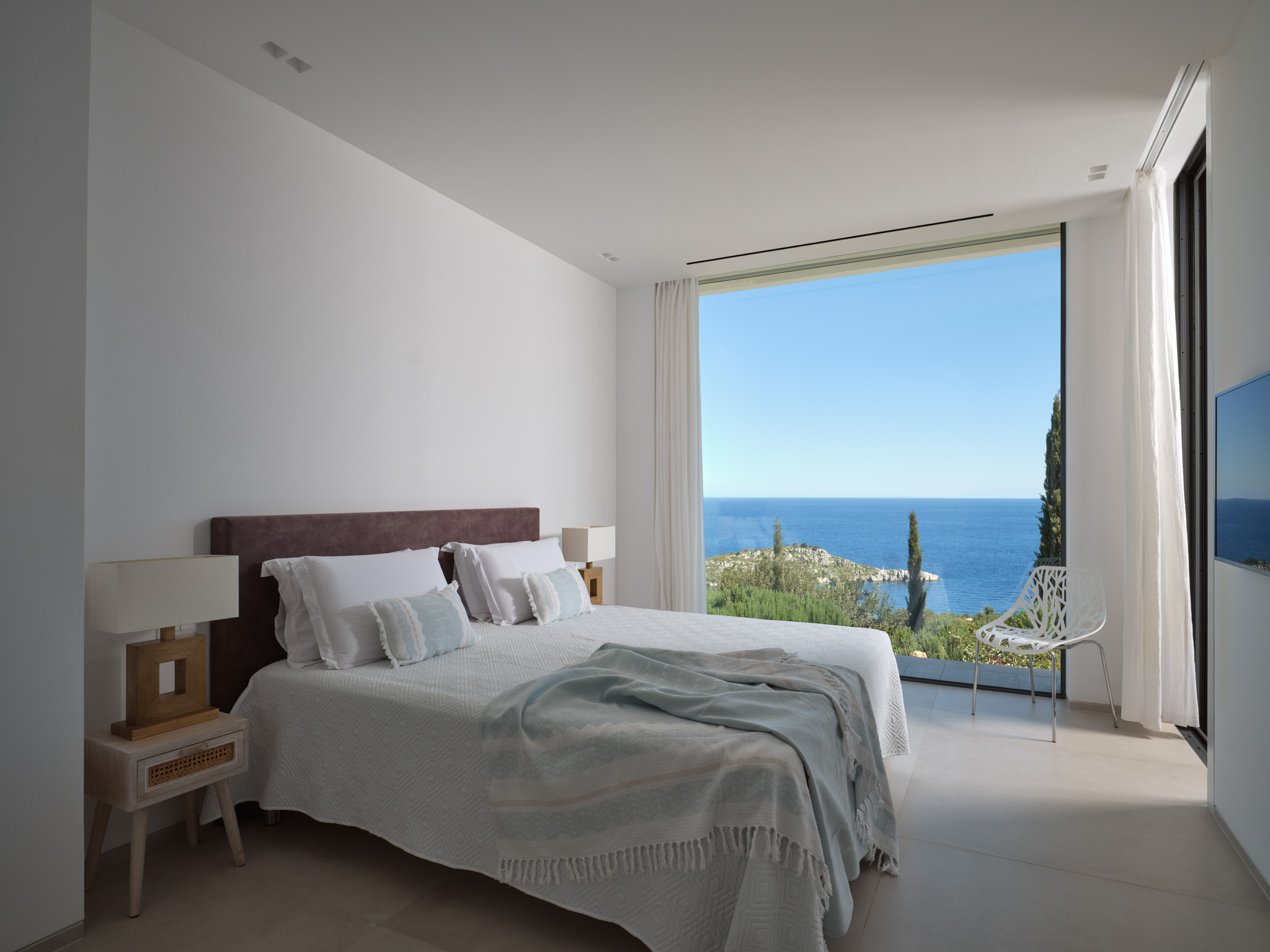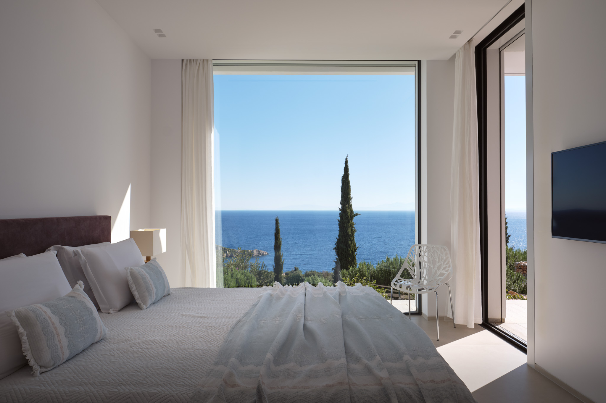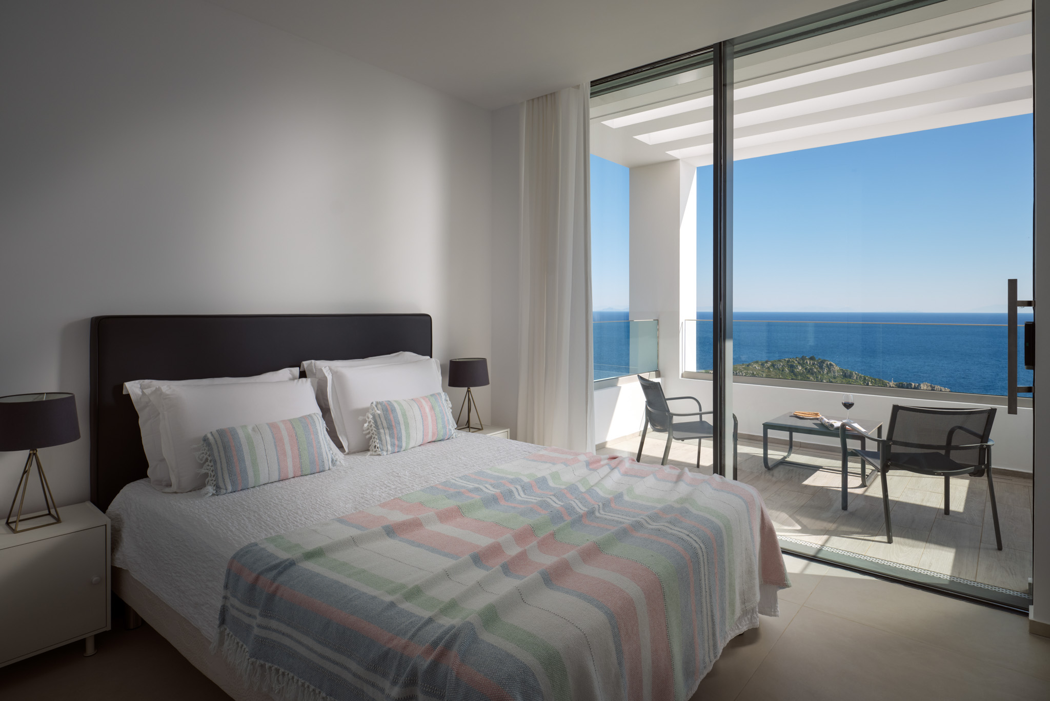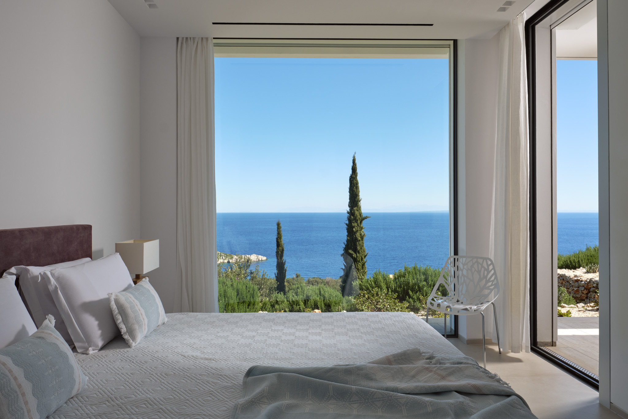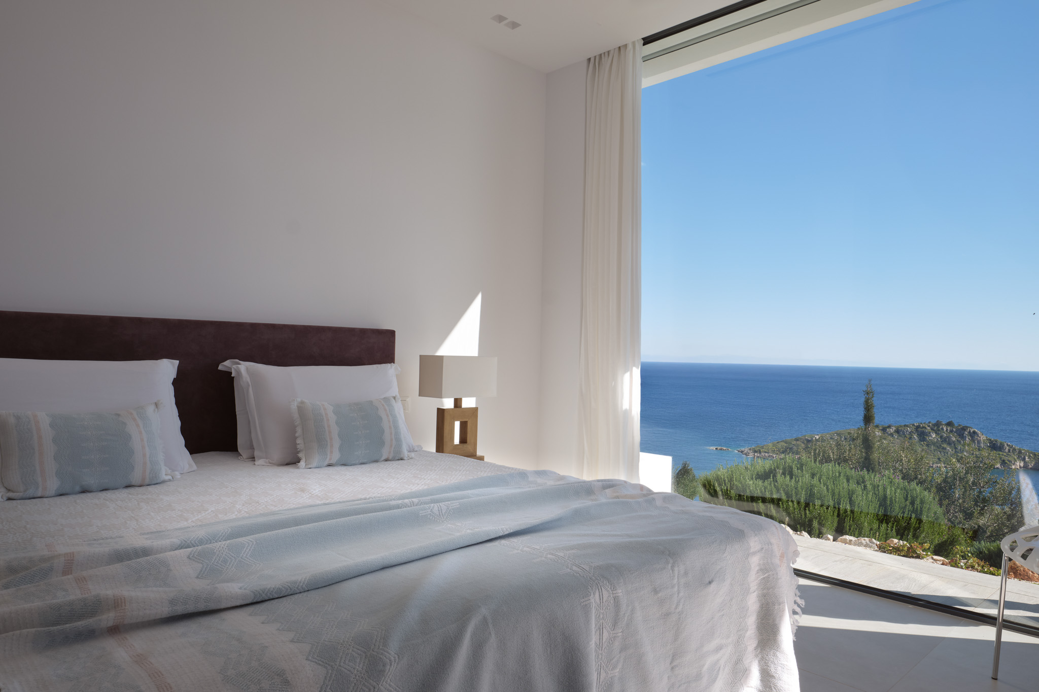 Clean-lined modernism is what Philia’s all about. With walls of glass that bathe the villa in gold when the sun hits just right, and allow you to marvel at the endless shades of blue from inside and out.