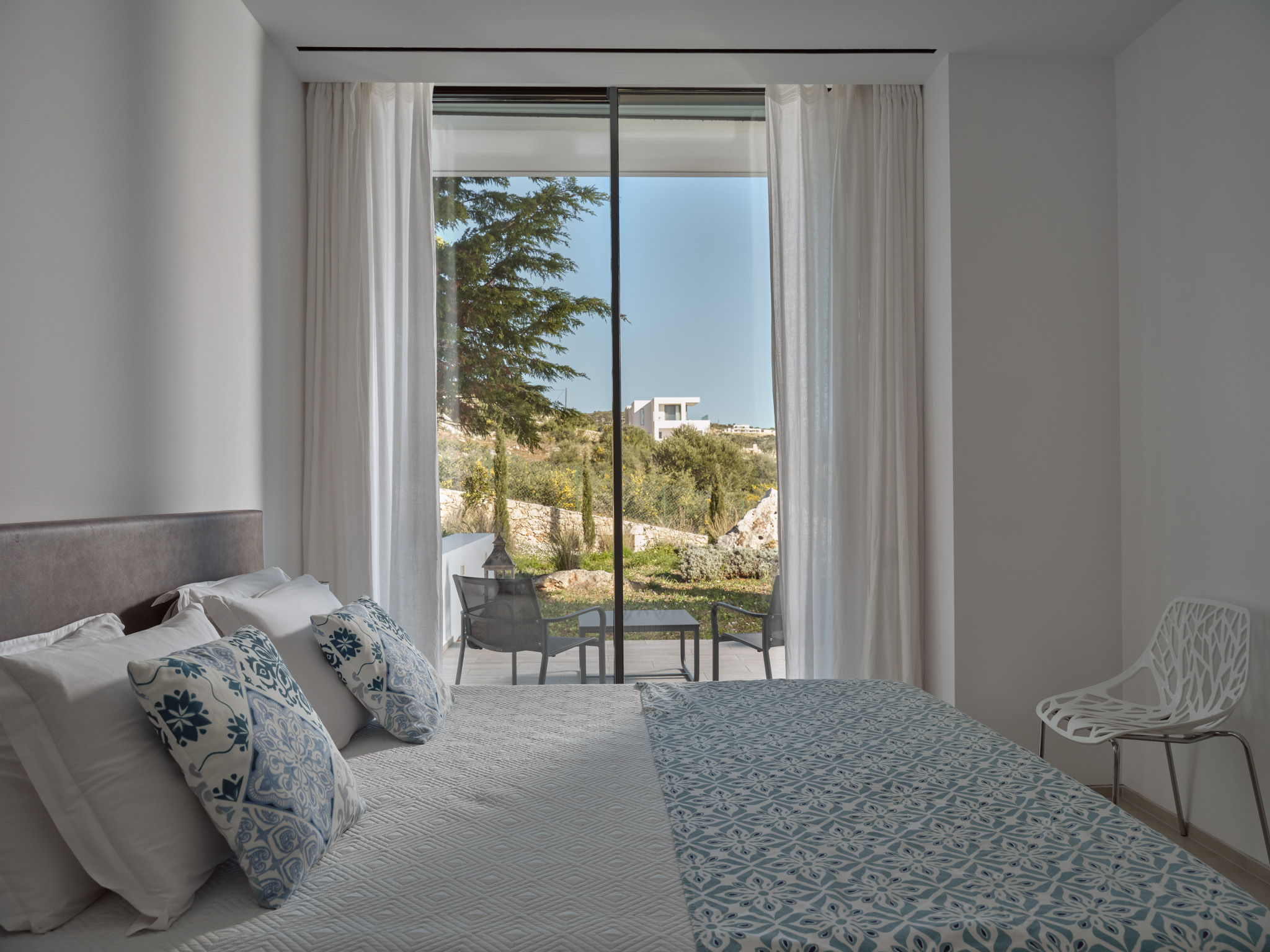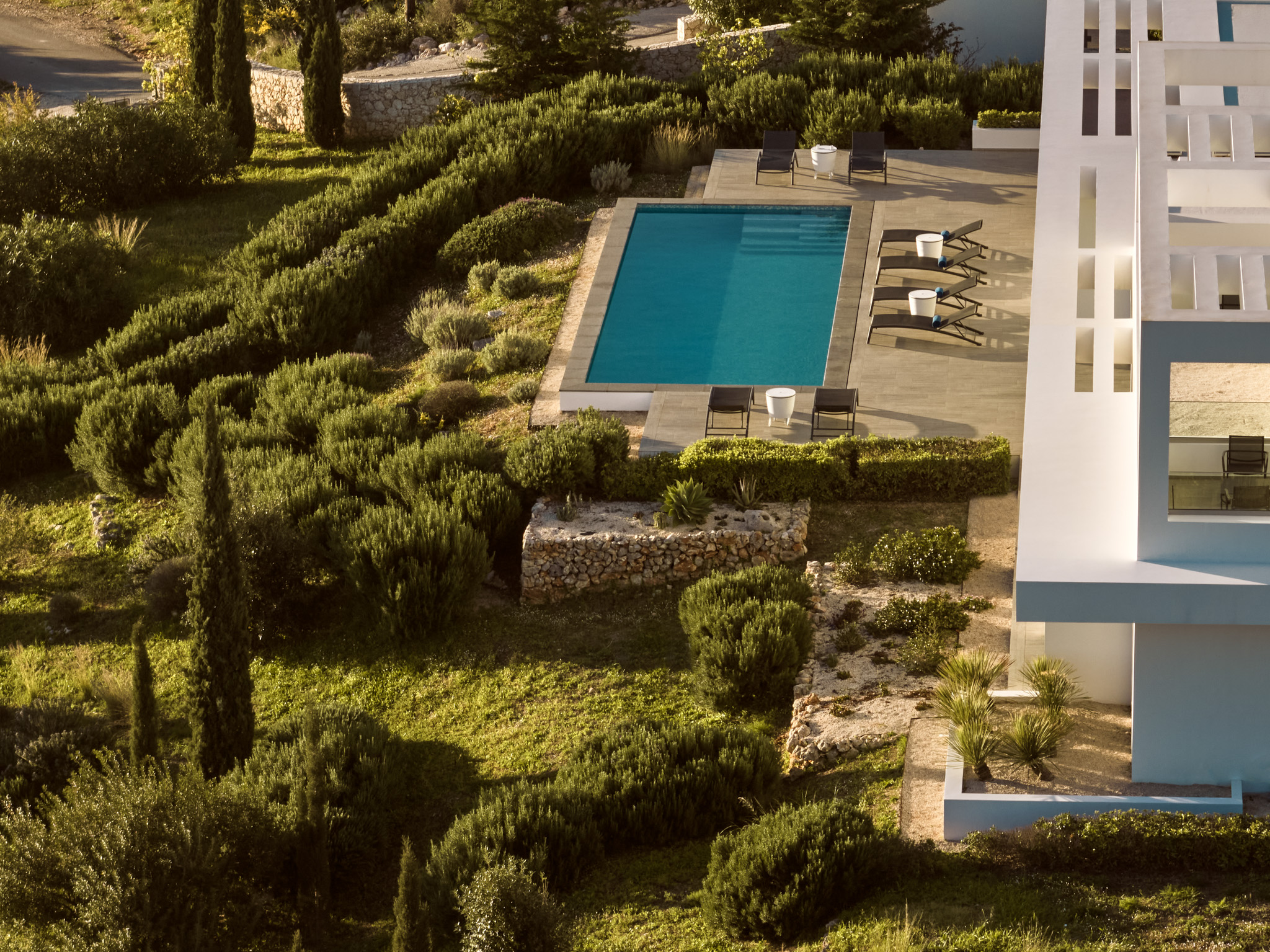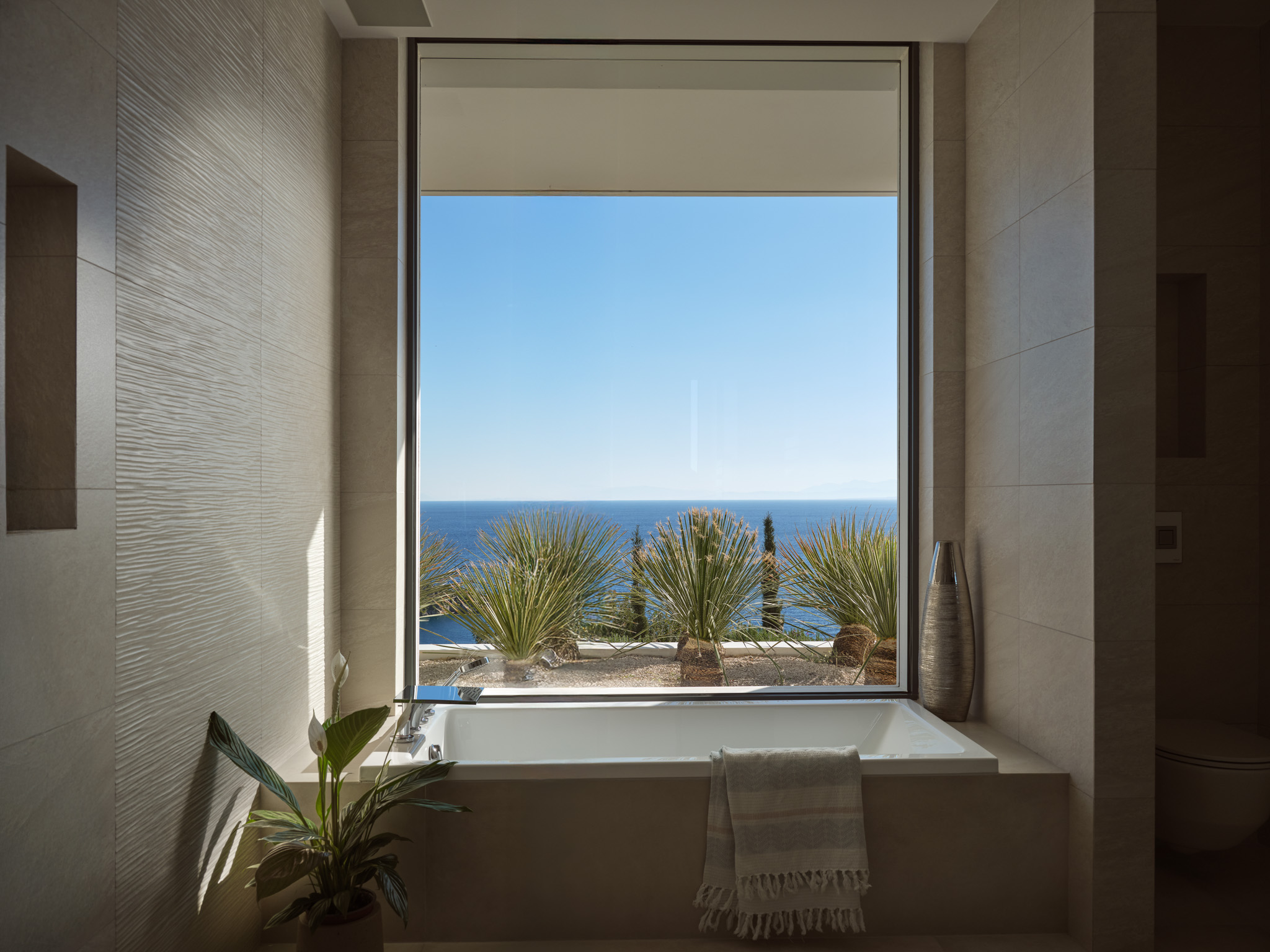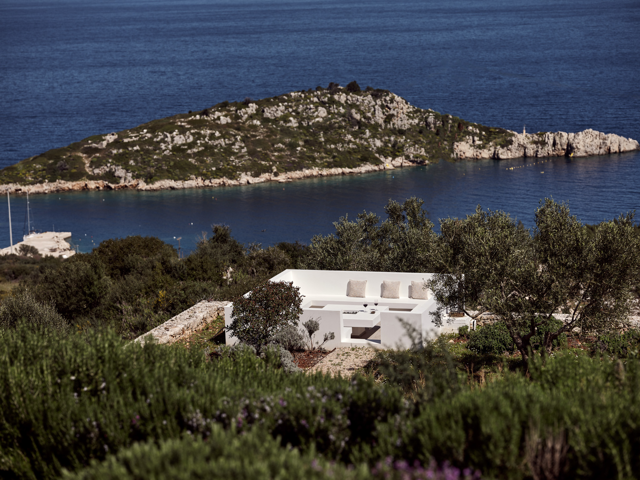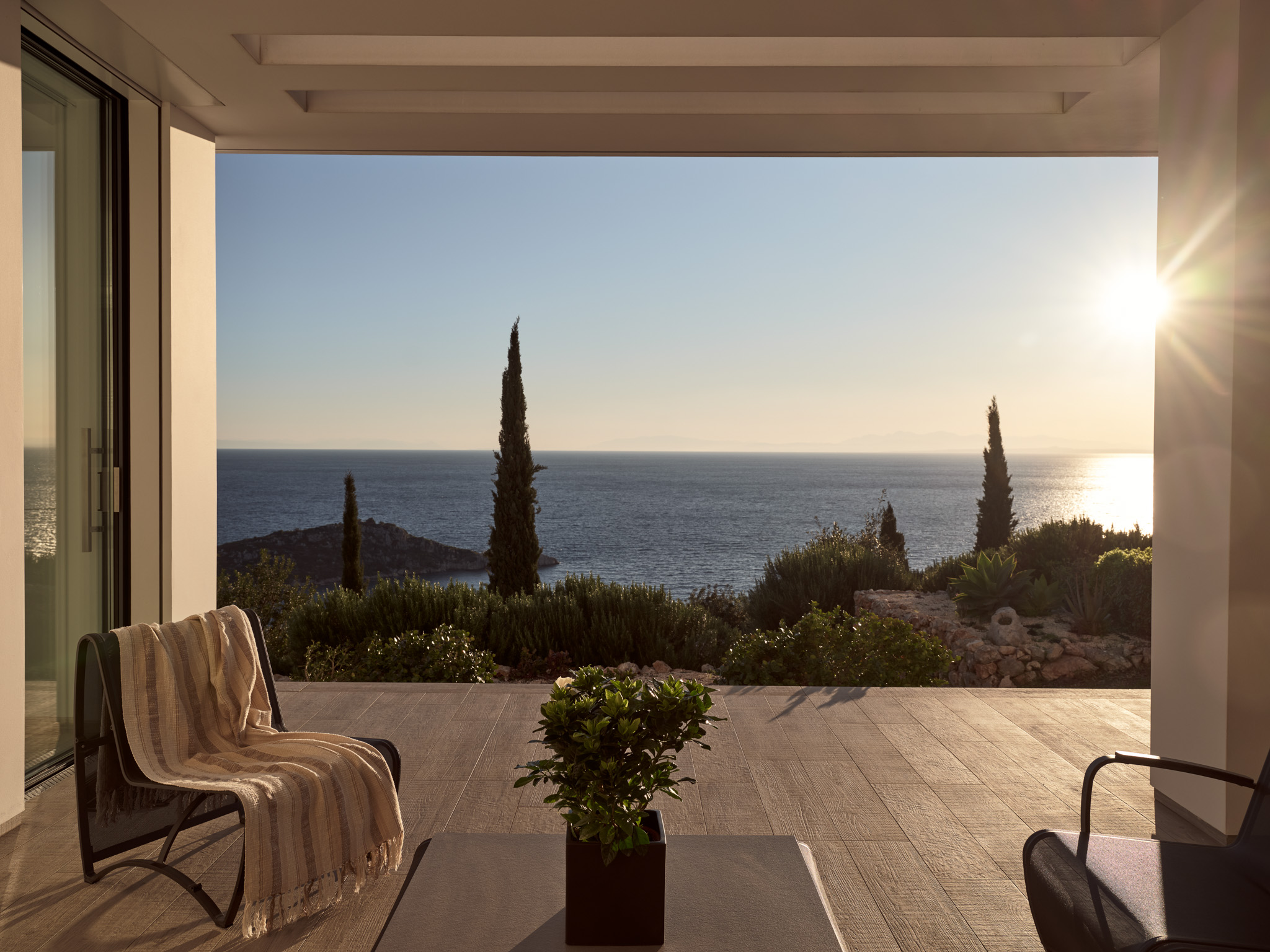Clean-lined modernism is what Philia’s all about. With walls of glass that bathe the villa in gold when the sun hits just right, and allow you to marvel at the endless shades of blue from inside and out.