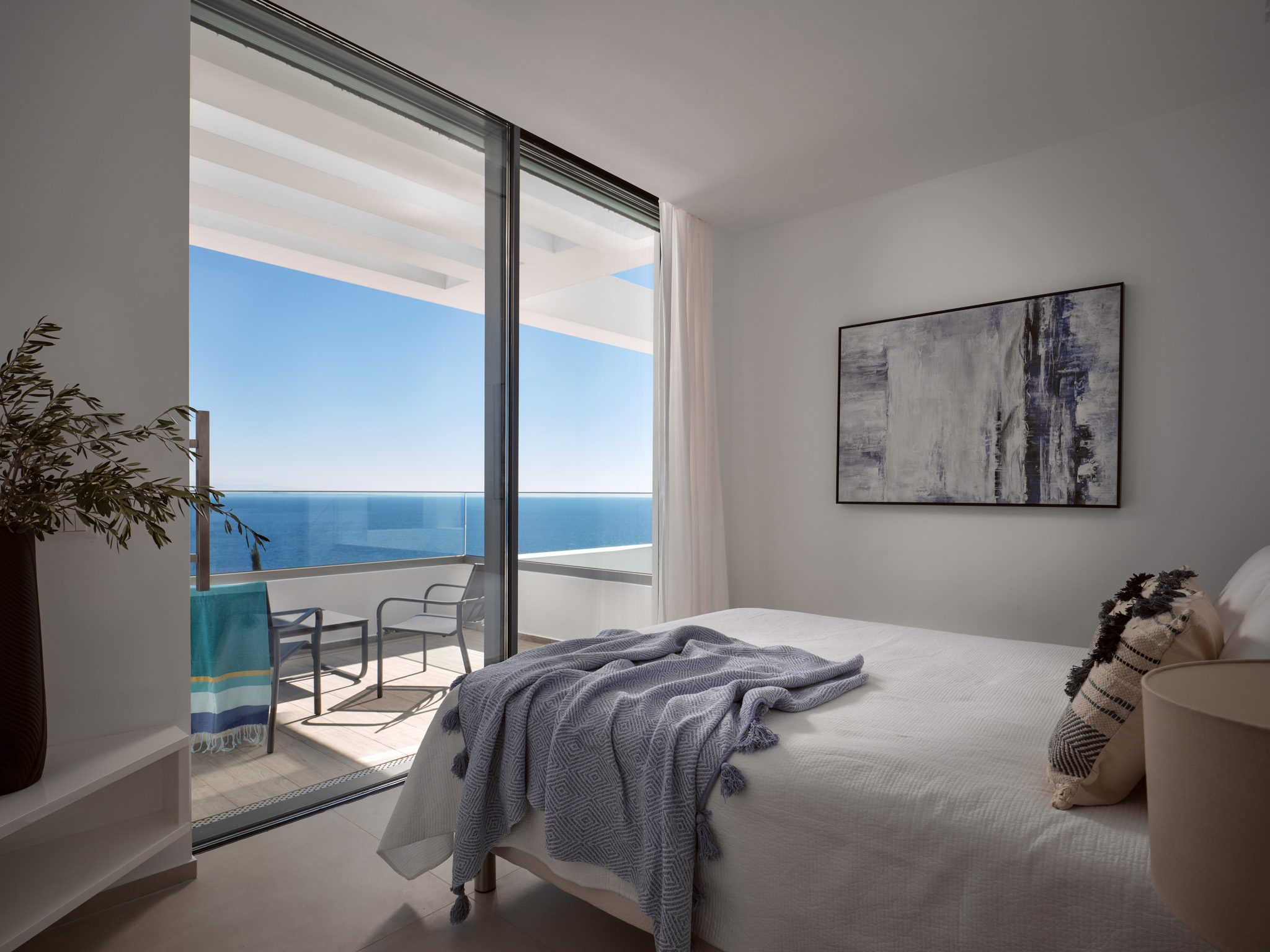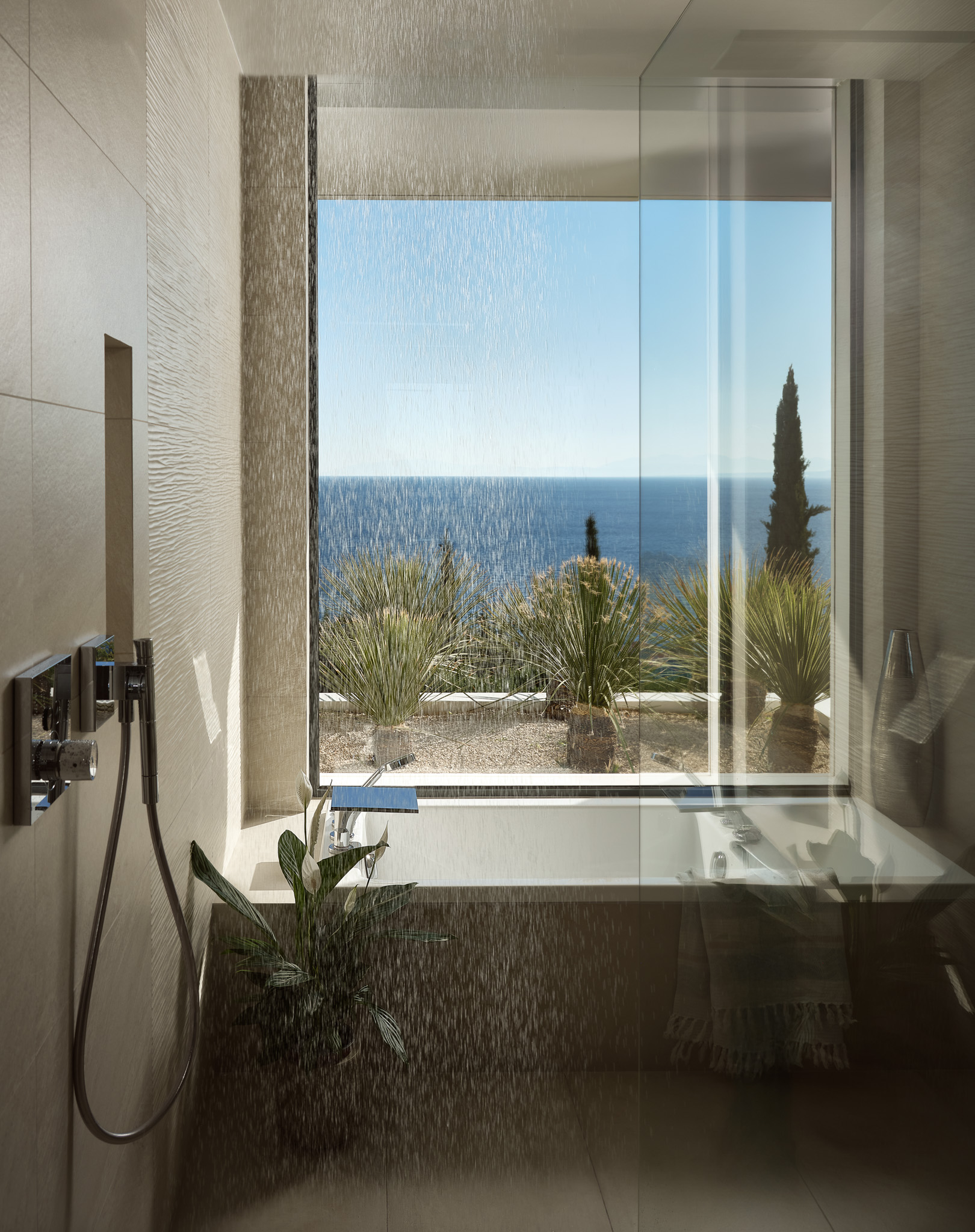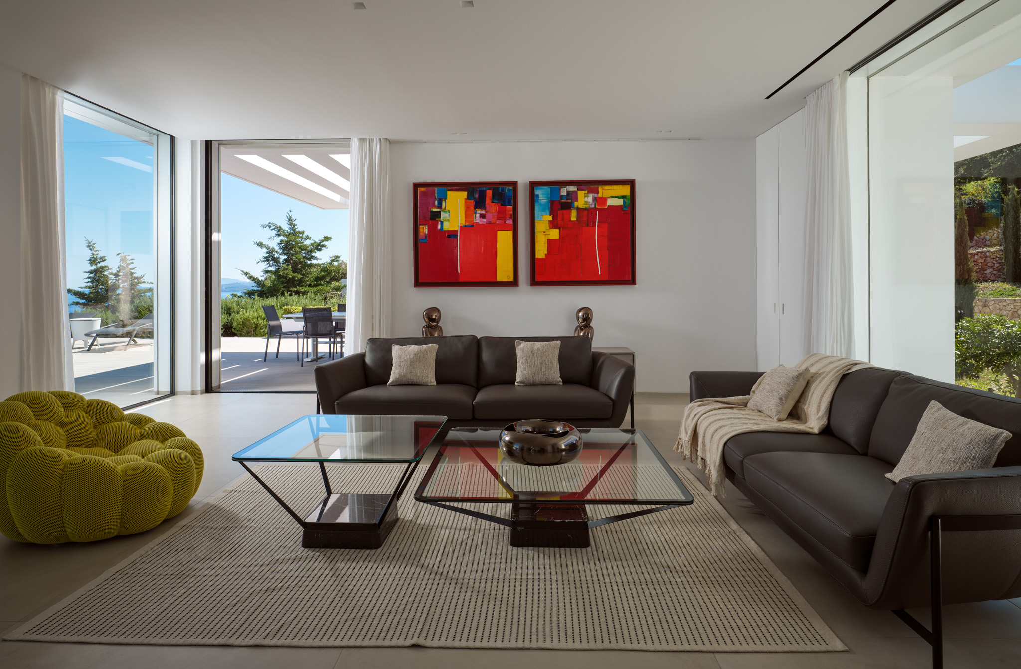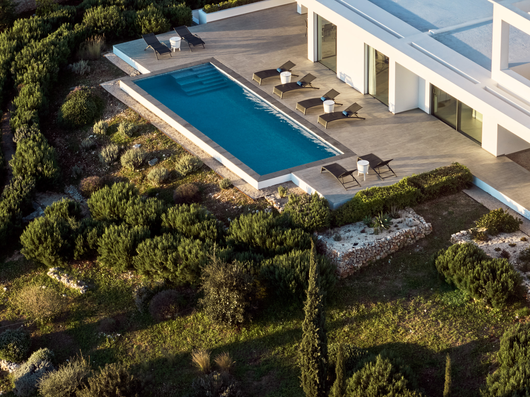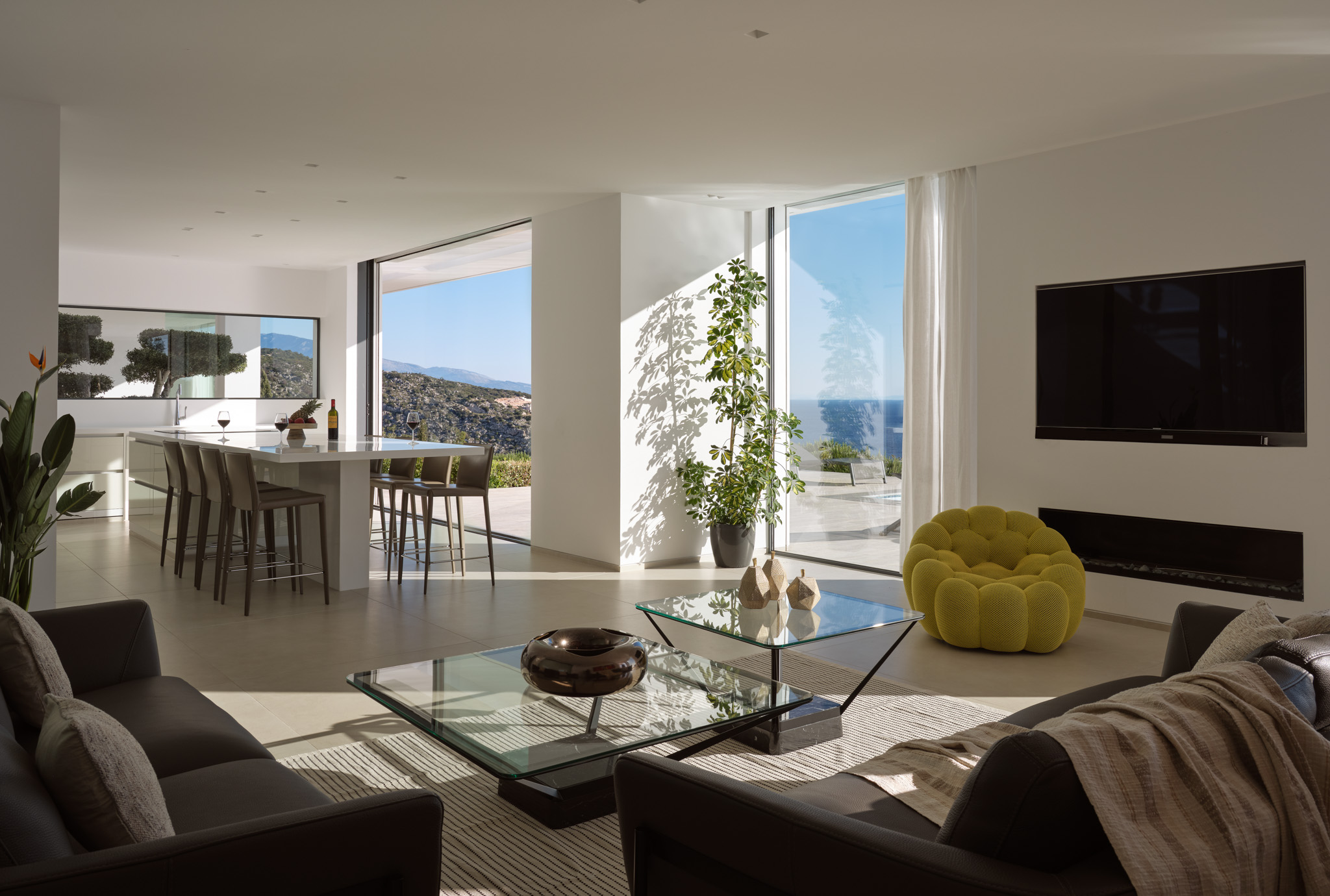 Clean-lined modernism is what Philia’s all about. With walls of glass that bathe the villa in gold when the sun hits just right, and allow you to marvel at the endless shades of blue from inside and out.