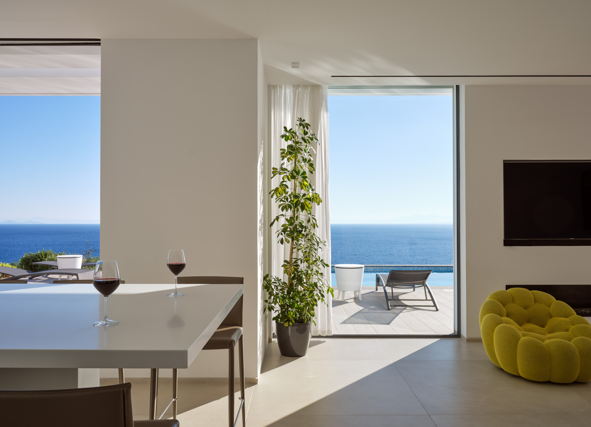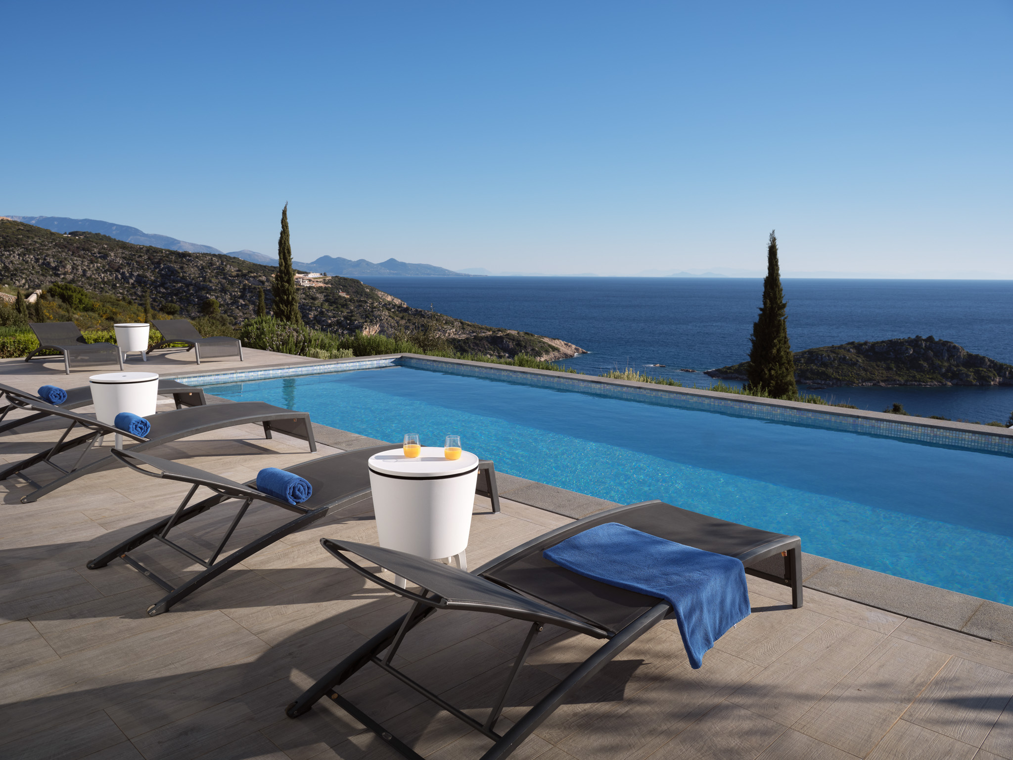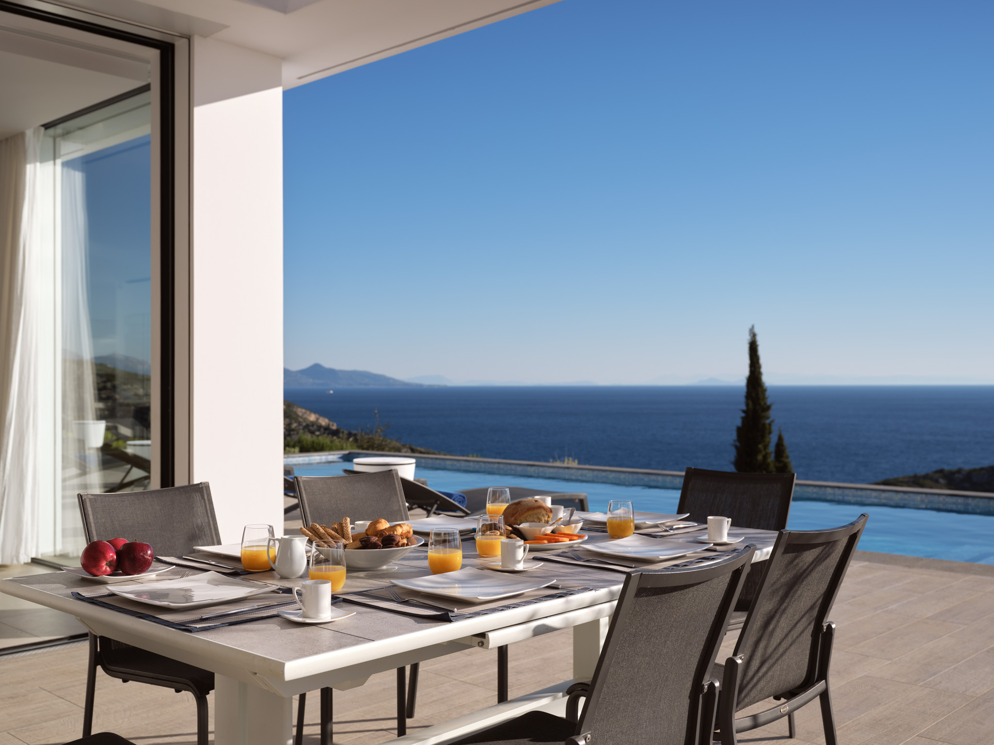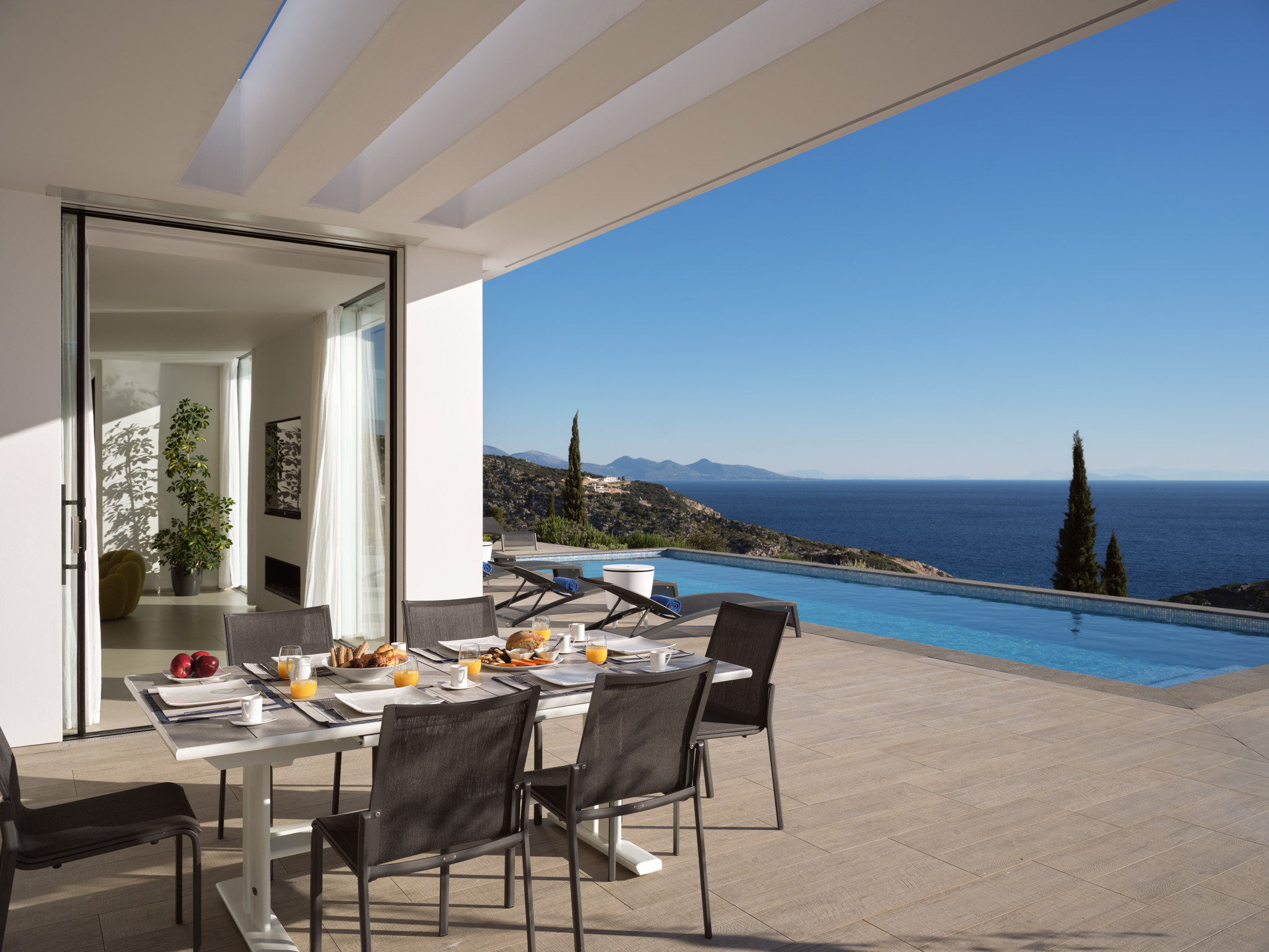 Minimalist, modern living and spectacular sea views; Philia is a standout villa for your next summer holiday. Get the family or a group together and enjoy the sleek interiors and relaxing setting.