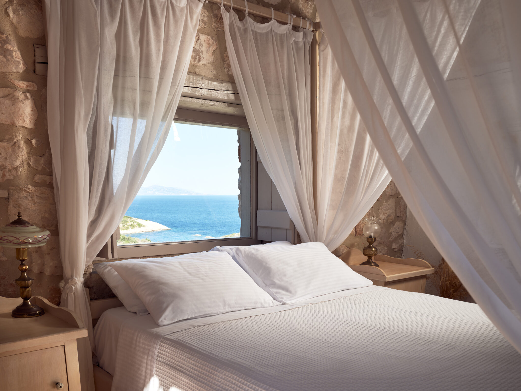 Yria has two bedrooms, one en-suite Master double upstairs and then on the lower ground floor, there is a twin bedroom with a living room that has two sofa beds that can be turned into twins for an additional charge.