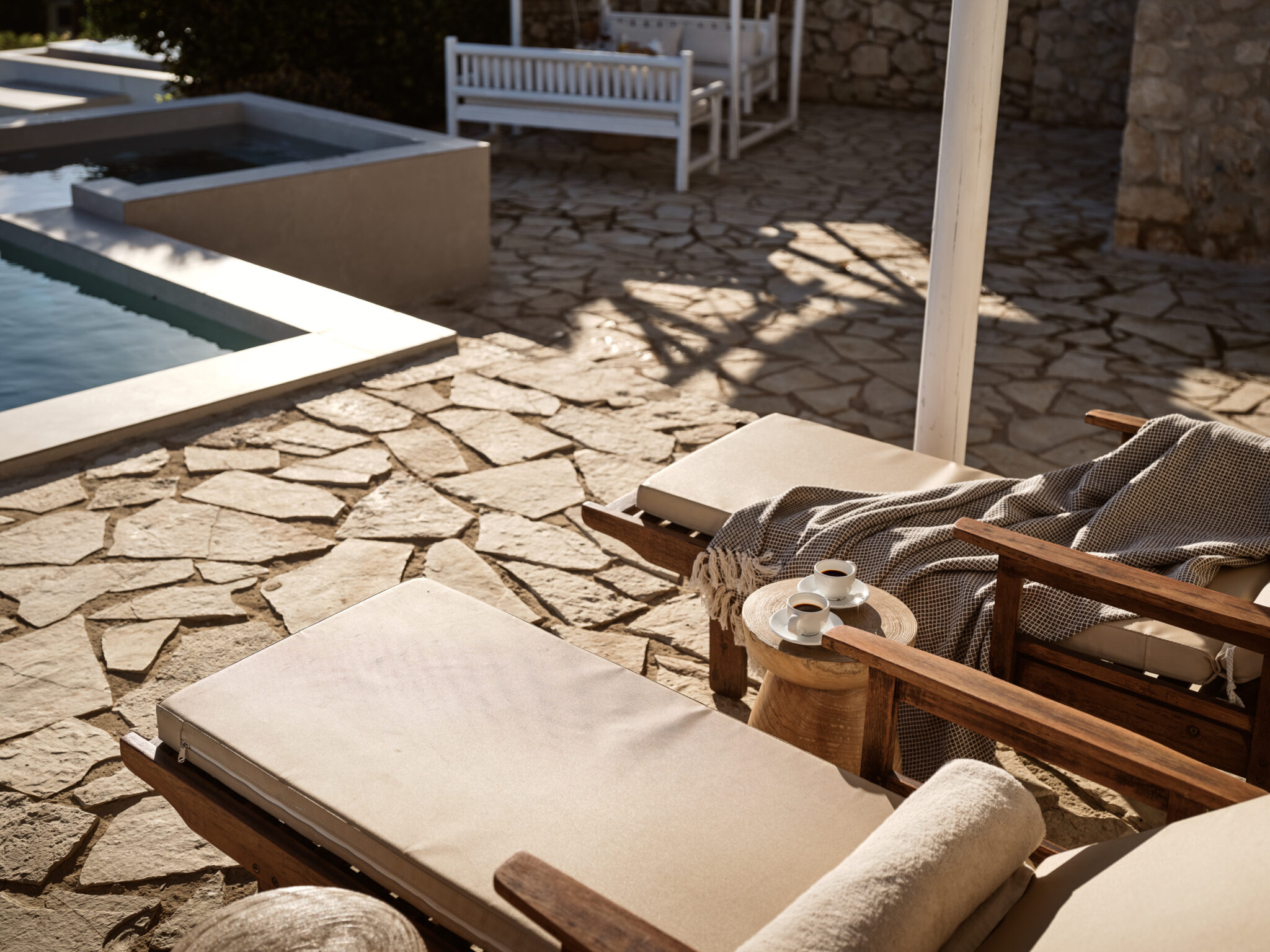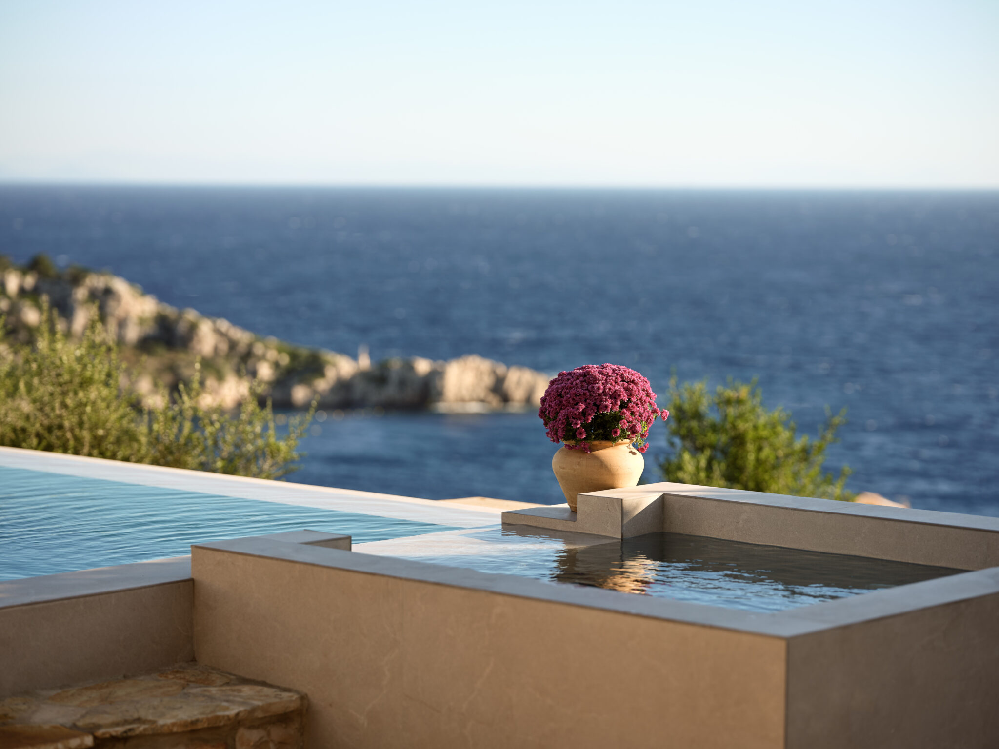 Incredibly popular with Indigo Rock guests, the Orfos Villas are a collection of four properties made up of two townhouse style, semi-detached, buildings each with their own swimming pools. Yria is paired with Sofia. The Orfos Villas are perfect for families or small groups of friends.